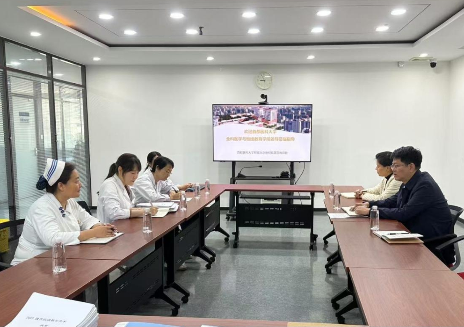 董斌副院长带领成人学历教育办公室老师到宣武医院和附属北京世纪坛医院进行了实地教学检查,临床教学医院的主管领导、教学管理人员及教研室教师代表陪同检查并座谈交流。