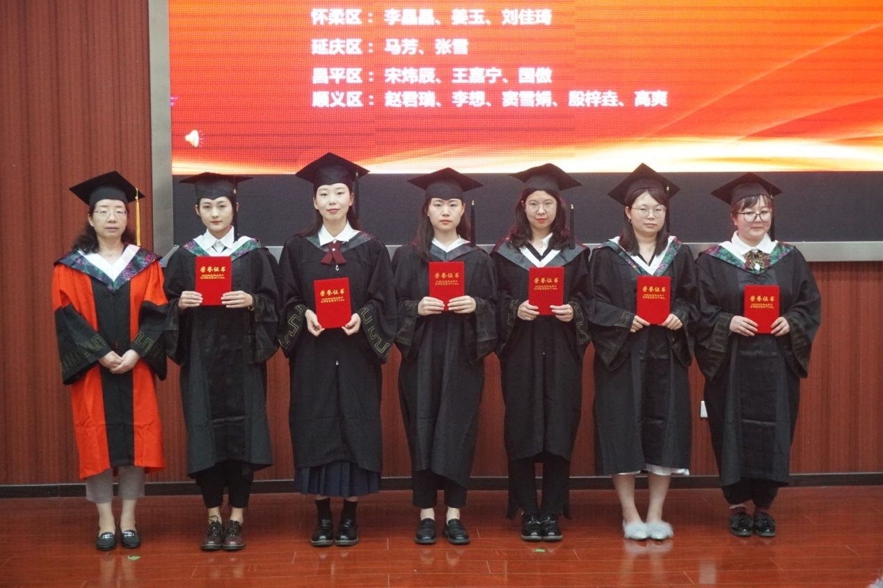 路孝琴书记、吴浩院长、杜娟副院长为51名获得学士学位的毕业生行拨穗礼并授予学位;杜娟副院长为优秀毕业生颁发了优秀毕业生证书。