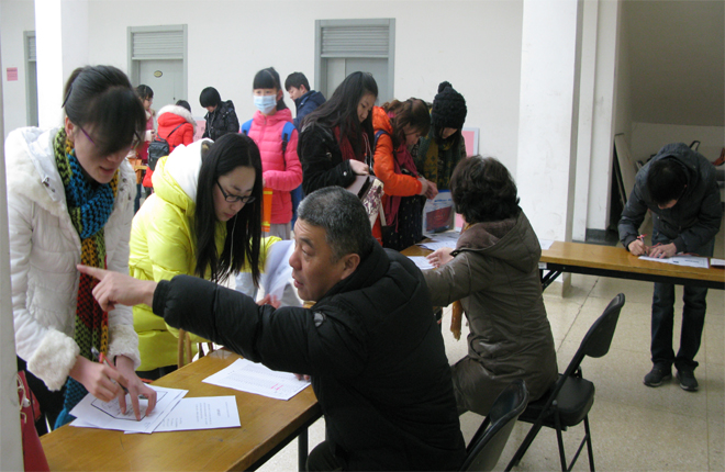 在第二教学楼南大厅组织2014级成人学历教育新生报到。2014级新生共计1758人,其中专升本为1267人,专科为491人。